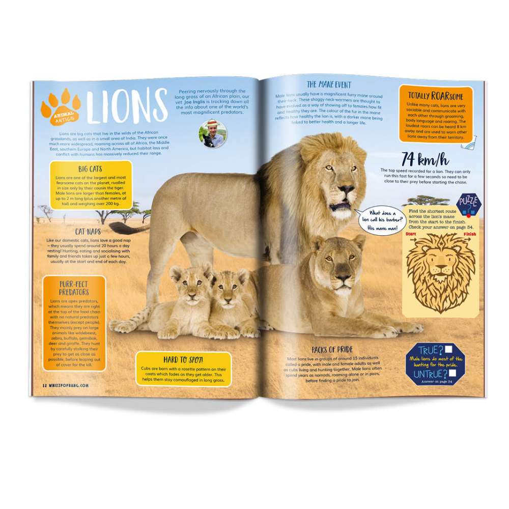 You’ll be able to print leopard-print paper, make a fun African game using an egg carton and craft a safari diorama, complete with its own watering hole and real live grass! Discover ten awesomely amazing safari animals, find out how walkie talkies work and get up close with one of the largest and most ferocious predators around – the glorious lion! Meet an elephant keeper at a very special Kenyan animal sanctuary, find out about Thomas Odhiambo who used science to find Earth-friendly ways to control pests on crops and see if you can spot the camouflaged creatures hiding in our photo gallery!