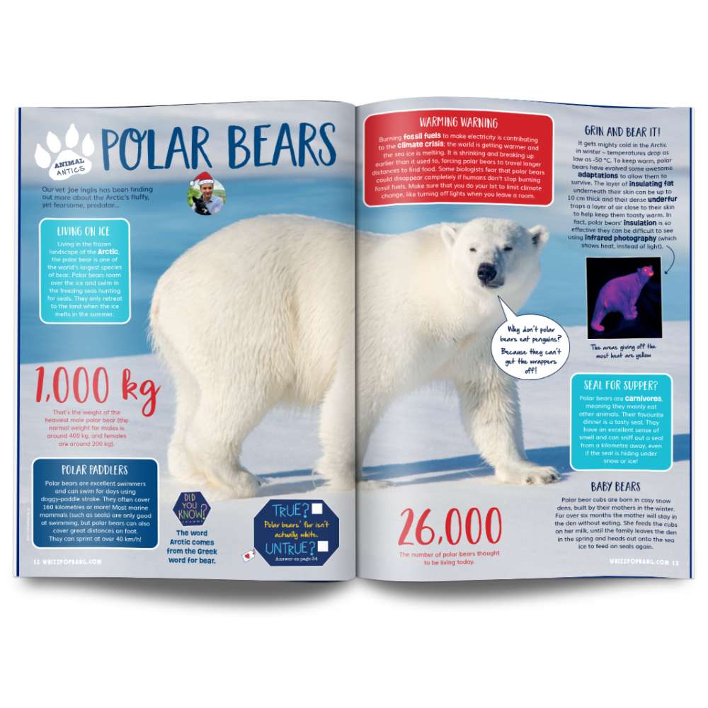 Get ready for a flurry of frosty fun in this brrr-illiant winter edition of Whizz Pop Bang! Curious kids can investigate the secret science of snow – how it forms, why it sparkles and how both people and animals manage to stay snug in freezing conditions. They’ll discover the clever engineering behind snowmobiles, have a go at making DIY fake snow and even try an insulation experiment that involves baking ice cream (really!).