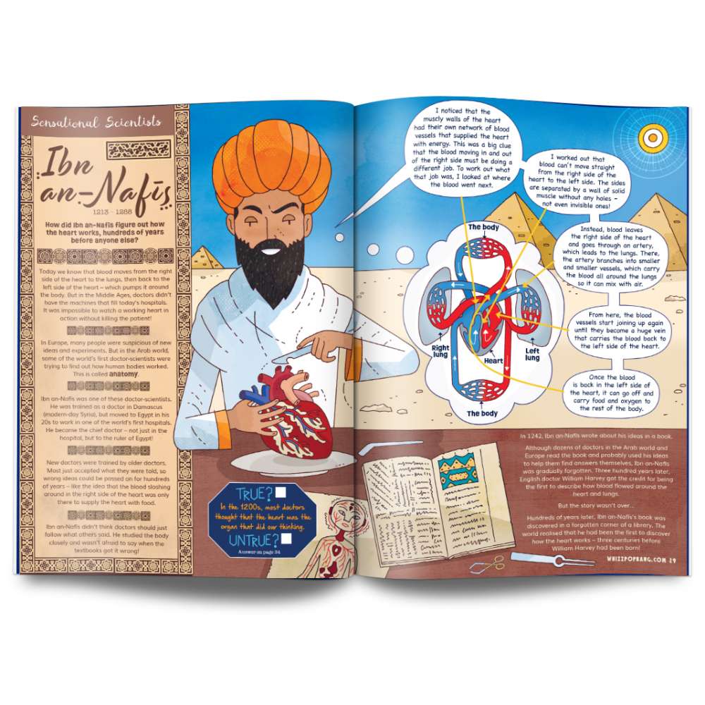 In Whizz Pop Bang: Pump It Up, curious kids will discover how the incredible muscle inside their chest keeps them alive every second of the day. Find out how blood travels around the body then transform some household items into a working stethoscope. Meet Ibn an-Nafīs, the incredible scientist who cracked the secrets of the heart centuries ago. Explore some of the strangest hearts in the animal kingdom – including creatures with huge hearts, super-strong hearts and even animals with no heart at all!